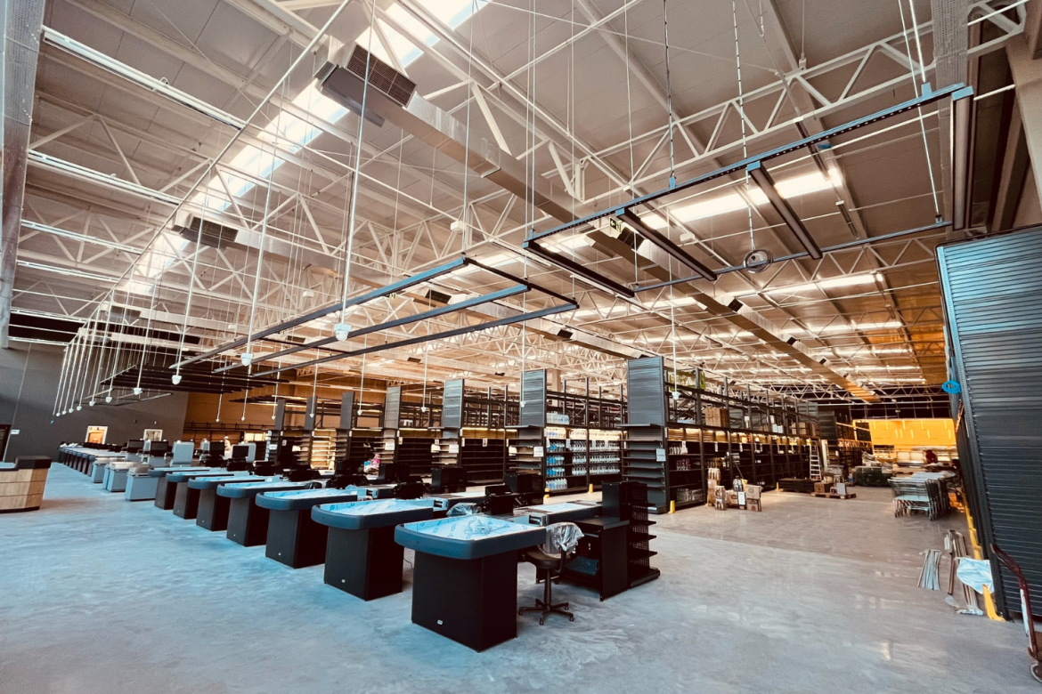 Durante a reconstrução, as operações funcionaram em um espaço temporário. Agora, um novo prédio foi erguido, somando 3,7 mil metros quadrados de área de vendas — 800 a mais do que na estrutura anterior.