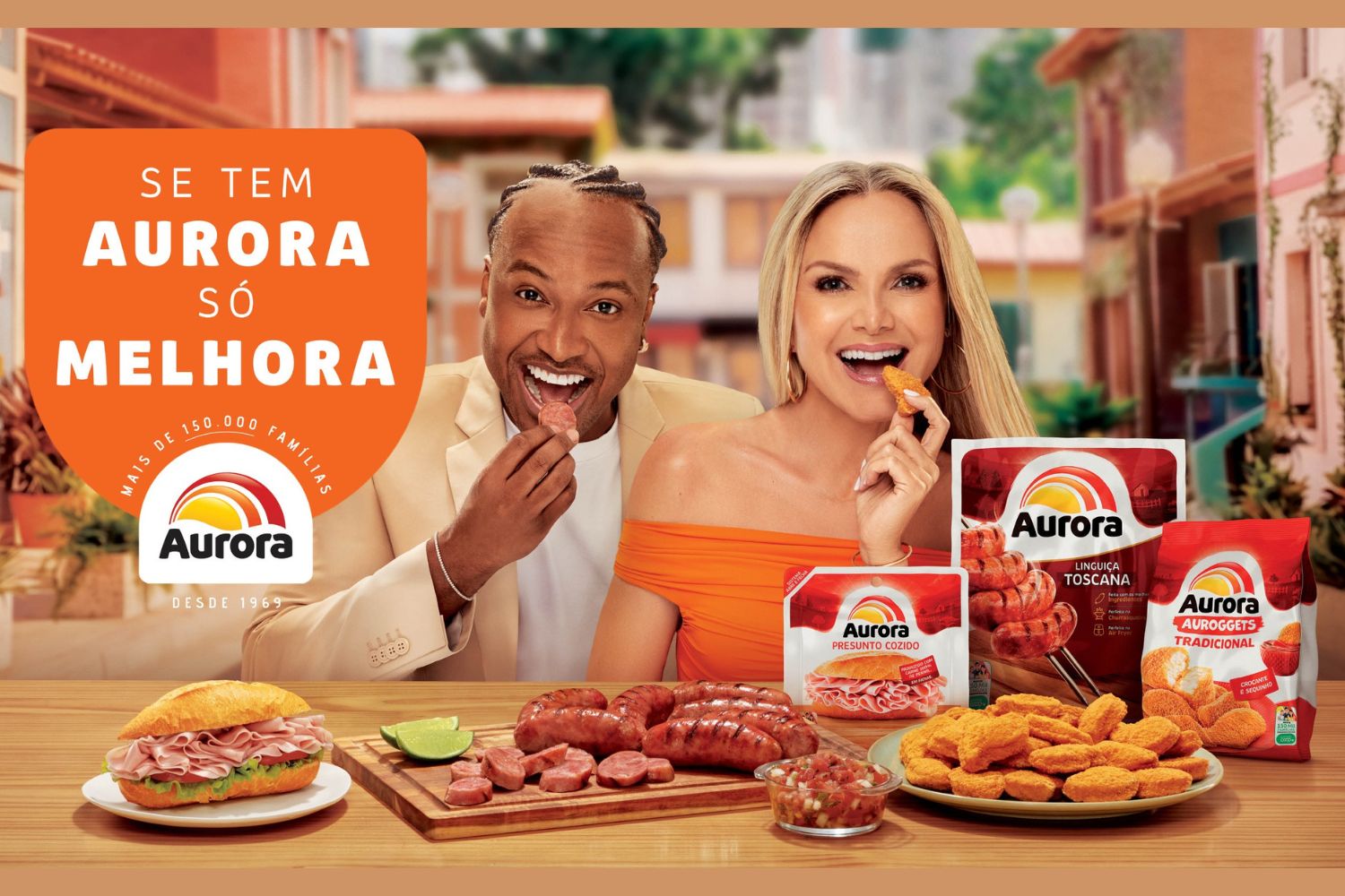 O conceito parte do insight de que a presença da Aurora eleva qualquer ocasião de consumo, do prazer sensorial à conexão entre amigos e família. Para dar rosto a esse momento, a marca escalou dois dos maiores nomes do entretenimento brasileiro, Eliana e Thiaguinho. Eliana representa a conexão com as consumidoras e traz a figura da mulher moderna que busca qualidade e bem-estar no dia a dia. Já Thiaguinho, com forte apelo entre o público jovem, reforça o território da celebração, do churrasco e do futebol, aproximando o consumo dos produtos de contextos de entretenimento, festa e convivência.