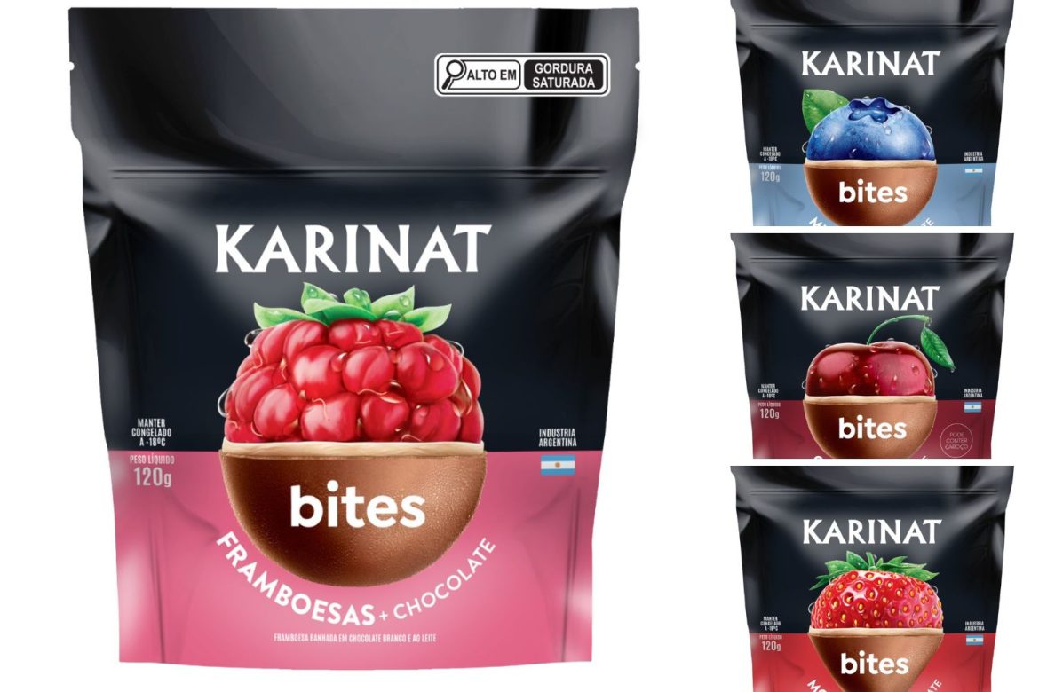Os bites de frutas cobertos por chocolate da marca argentina Karinat chegam às prateleiras de todo o Brasil a partir deste mês. O país que fez o produto virar febre nas redes sociais e sucesso no varejo, ganha uma novidade. Além do sabor framboesa, Karinat apresenta ainda outras três versões: mirtilo, morango e cereja, todos envoltos em uma camada de chocolate branco e outra de chocolate ao leite.