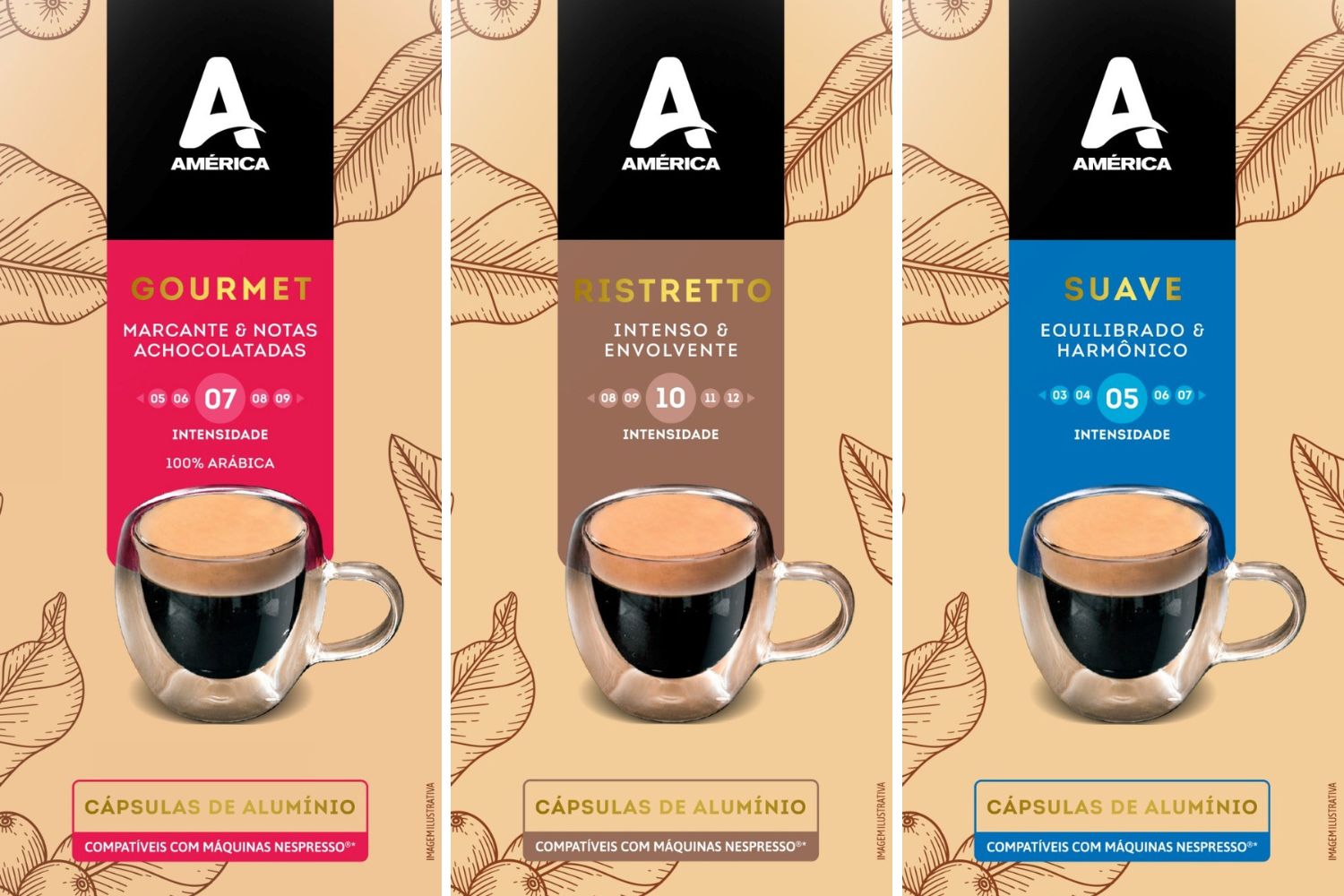 O Café América está lançando sua linha de cápsulas em novas embalagens nas versões Ristretto, Gourmet e Suave para proporcionar mais praticidade e oferecer ao consumidor seus cafés em cápsulas de alumínio para preservar o sabor e manter a qualidade do bebida com uma proposta sustentável.