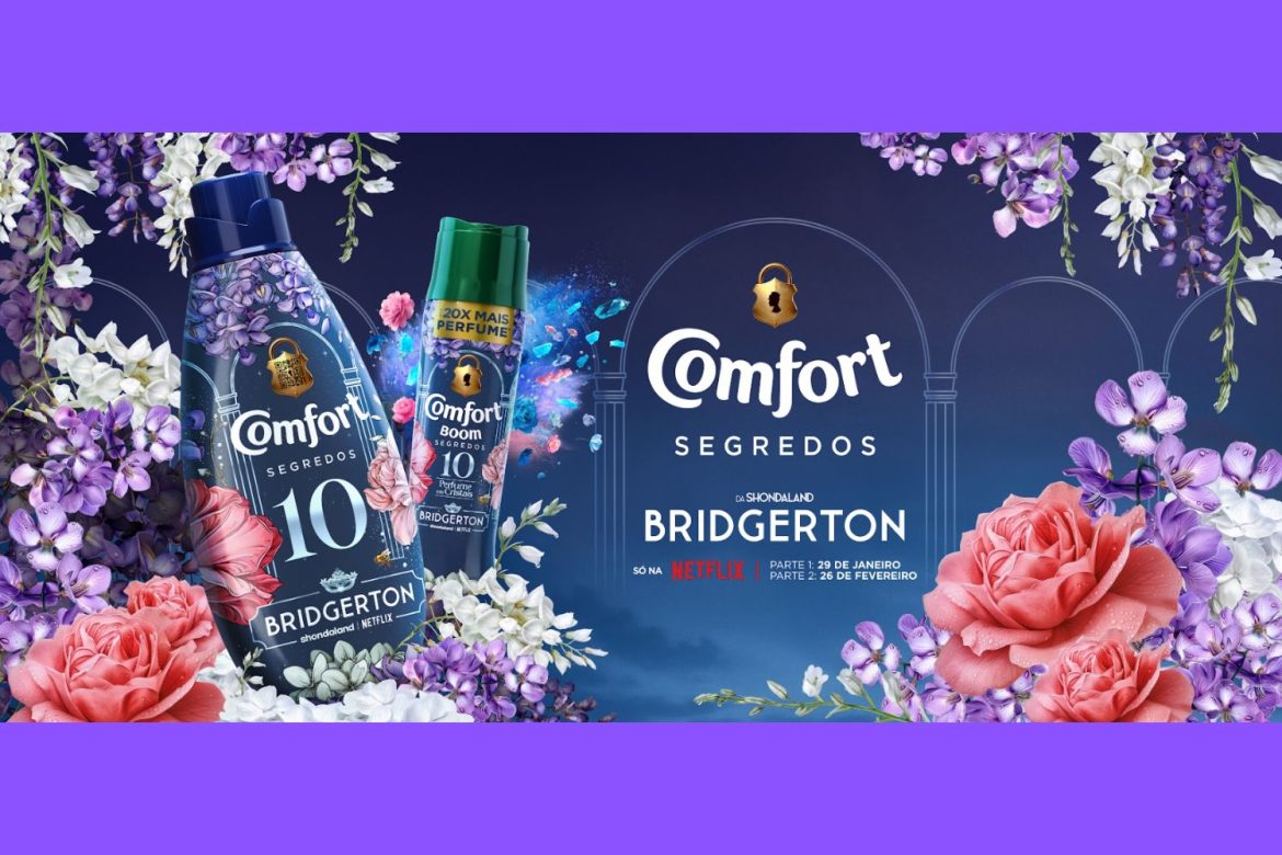 Comfort, primeira marca de amaciantes do Brasil, se uniu à Netflix para lançar a primeira linha de perfume para roupas inspirada em uma série original Netflix: Comfort Segredos Bridgerton. A linha, edição limitada, chega aos pontos de venda em novembro e conta com o combo de amaciante concentrado e Comfort Boom, perfume para roupas em cristais, com uma fragrância premium e envolvente que remete diretamente ao universo da série.
