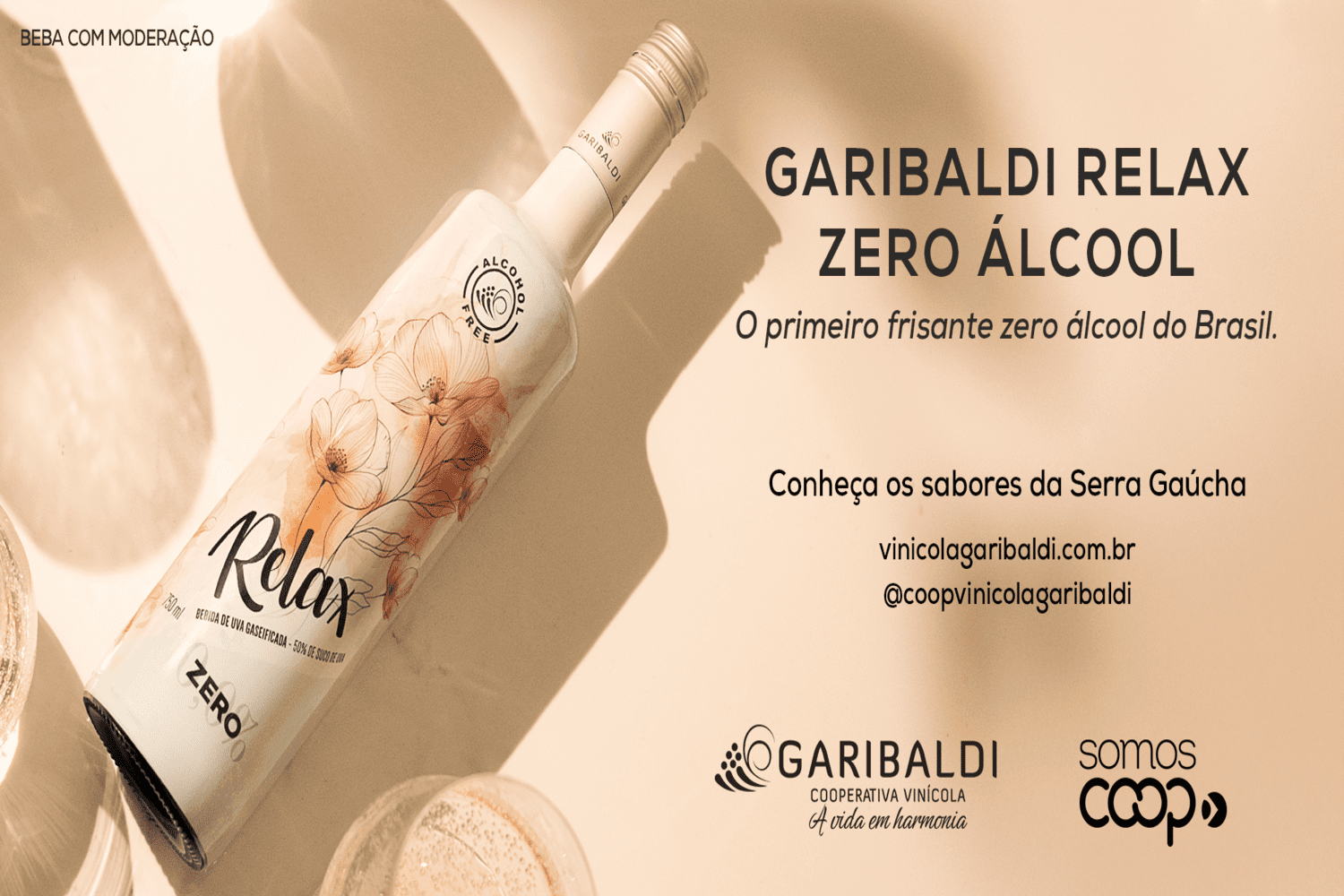 Cada vez mais presente nas gôndolas, os produtos zero álcool são os queridinhos da geração Z, principalmente. Em meio a esse mercado de novidades, a Cooperativa Vinícola Garibaldi chega com mais uma para garantir frescor entre esse público. A marca gaúcha acaba de lançar o vinho frisante sem álcool, o Relax Alcohol Free, de modo a encher a taça dos consumidores que não querem ou preferem bebidas desprovidas de álcool.