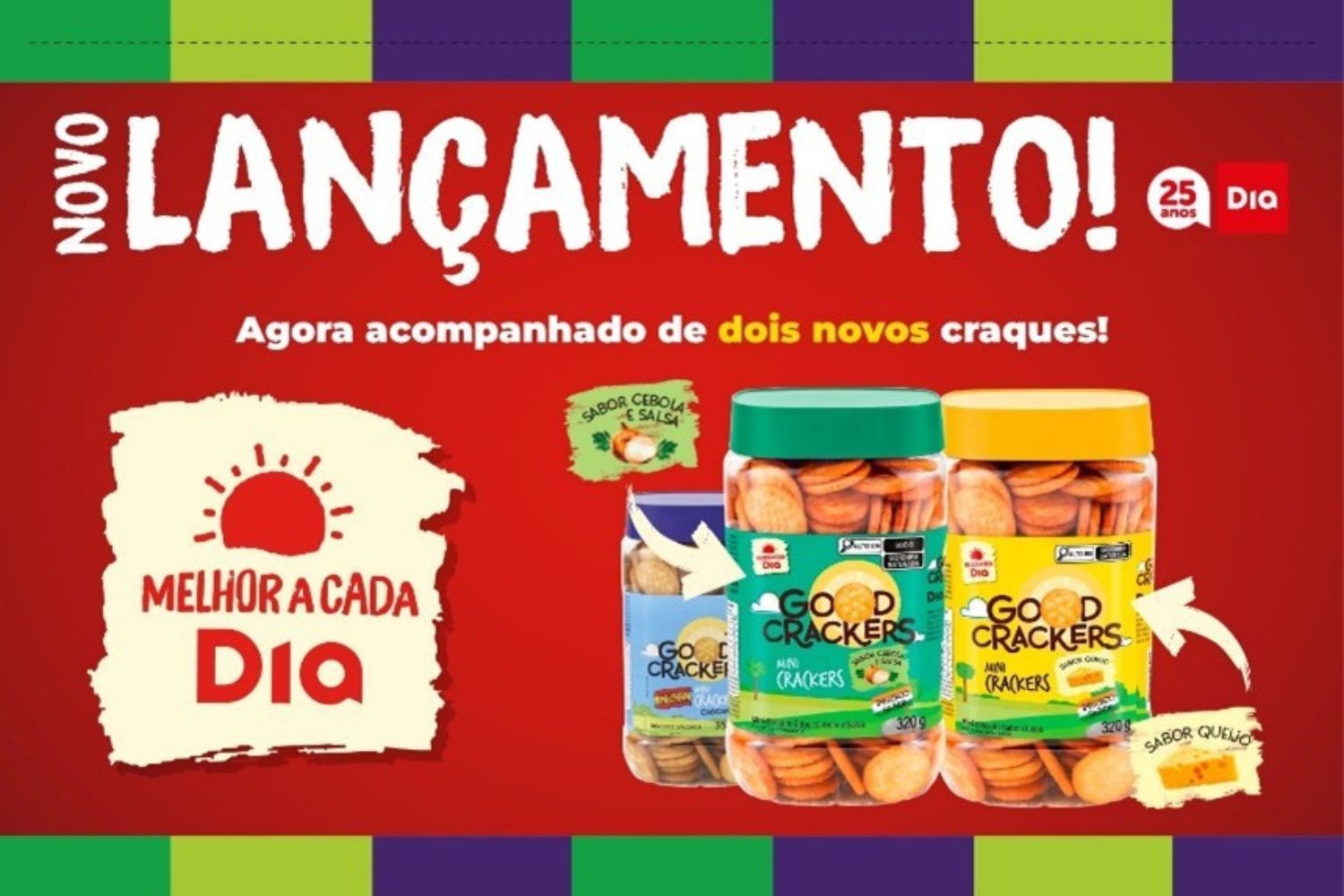 O Dia Supermercados anuncia a ampliação de seu portfólio de marca própria “Melhor a Cada Dia” com o lançamento de novos tipos e sabores da linha de snacks, incluindo a Batata On nas versões picante e pizza. Além dela, o produto importado, sucesso de vendas, Good Crackers ganha dois novos sabores, queijo e cebola & salsa.