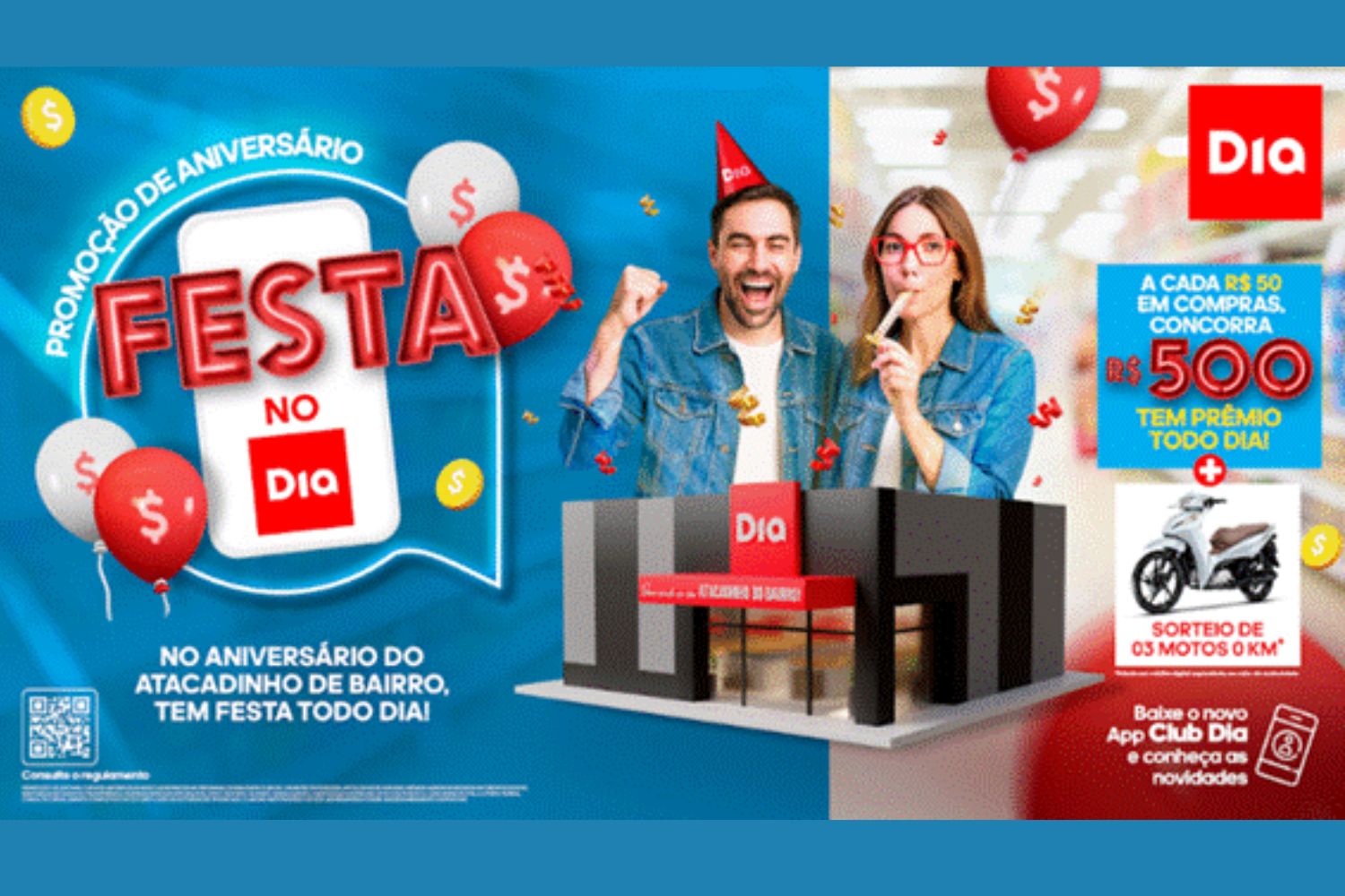 A campanha “Festa no DIA”, vai transformar todo o mês de outubro em um verdadeiro festival de prêmios e ofertas. A cada R$50,00 em compras, o consumidor concorre diariamente a R$500,00, depositados diretamente no PicPay, e ainda a 3 motos 0km, em sorteios oficiais realizados pela Loteria Federal. Para participar, o cliente deve ser cadastrado no Club Dia e se cadastrar no site da promoção, onde também terá acesso ao regulamento e demais informações da campanha.