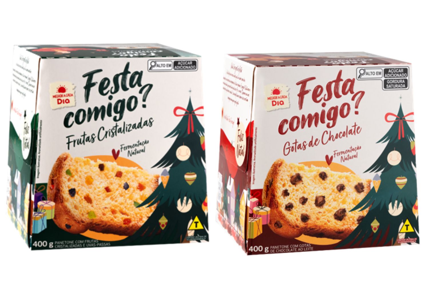 A fórmula do produto, que integra a linha de marca própria do Dia, chega com nova receita e traz mais maciez, além de mais frutas cristalizadas e chocolate. As embalagens são apresentadas em cores vibrantes e com elementos festivos, criando um visual atrativo no ponto de venda e que se destaca nas prateleiras das lojas.