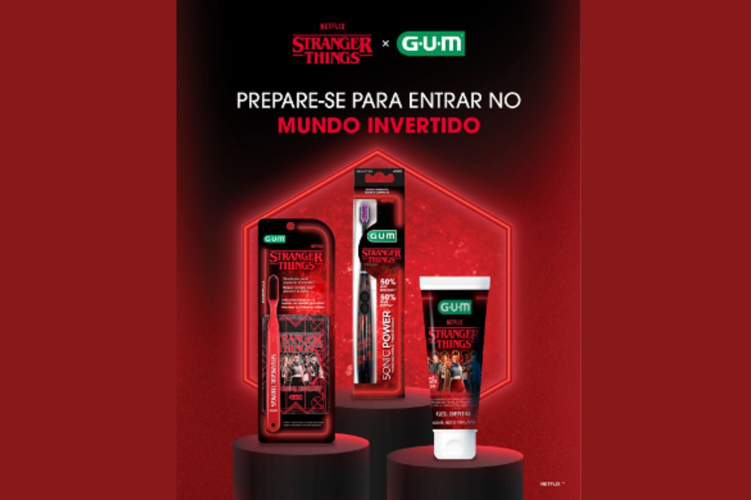 A GUM, marca especialista em produtos inovadores para cuidados bucais, lança uma linha exclusiva em parceria com Stranger Things, sucesso global da Netflix que chega à sua temporada final em novembro. A coleção apresenta produtos com design temático e tecnologia que unem o universo da série à inovação característica da marca.