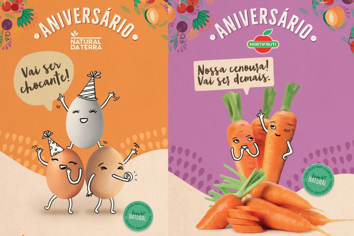 A rede explora seu sortimento saudável e traz frases divertidas como “É picles, é picles”, que remete à música tradicional das festas, além de “Vai ser chocante” e “Nossa cenoura! Vai ser demais”, em diálogos que mostram a expectativa para o aniversário da Hortifruti. O humor também estará presente na ação promocional criada para os clientes do “Leve Natural”, programa de fidelidade da marca. O conceito foi desenvolvido pela agência Binder.
