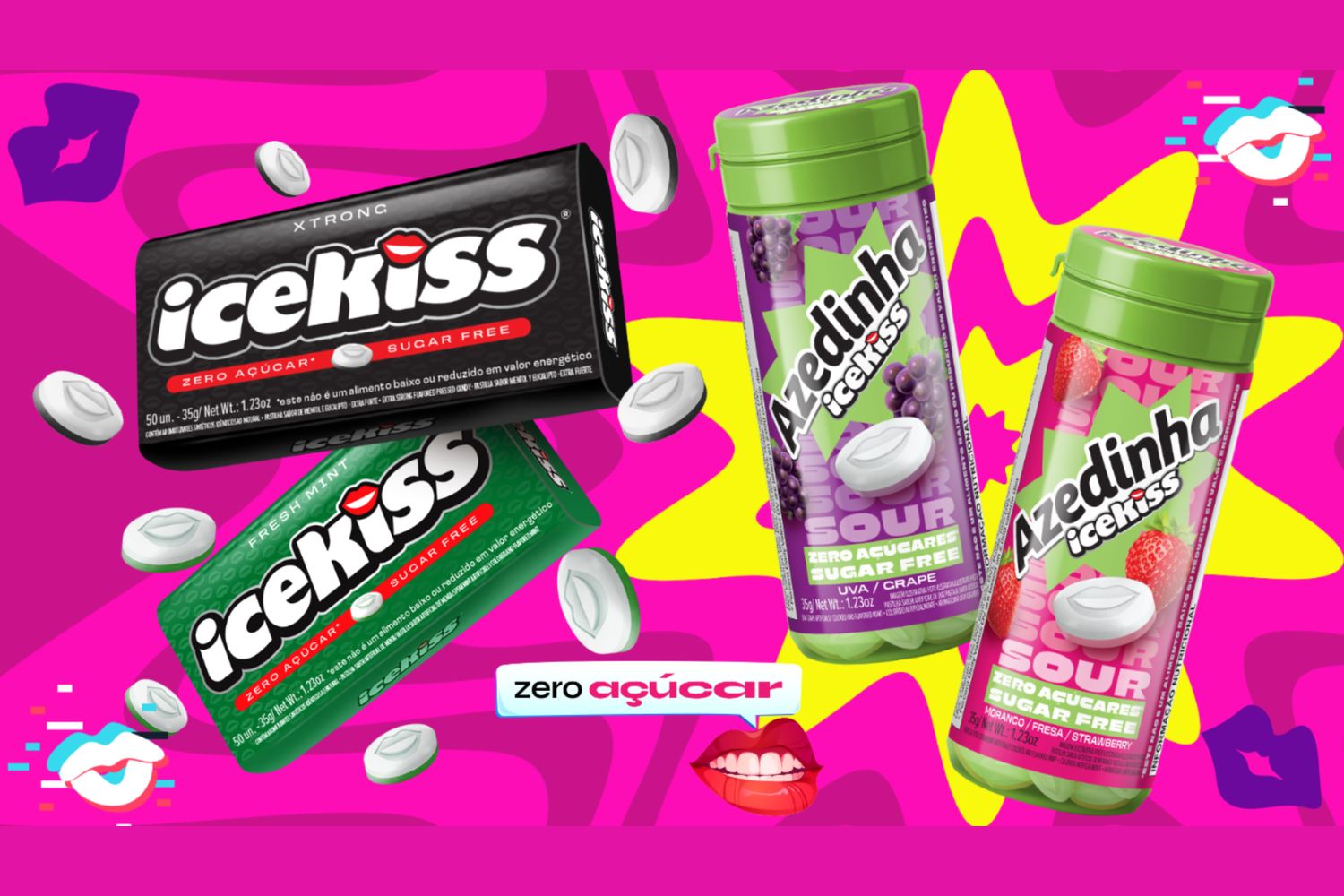 A Icekiss, marca da Cory Alimentos, anuncia a conclusão de um processo de rebranding e, ao mesmo tempo, dá um passo estratégico para ampliar a participação no segmento de candies: a marca lança sua primeira linha de produtos zero açúcar. A novidade chega ao mercado com versões em pastilhas de Icekiss Azedinha (uva e morango), Icekiss Menta e Icekiss Extra Forte, todas sem adição de açúcar, em embalagens modernas e voltadas ao consumo em diferentes momentos do dia.