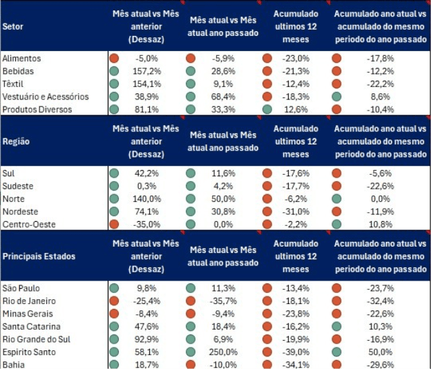 Abaixo, os dados setoriais e regionais da pesquisa.
