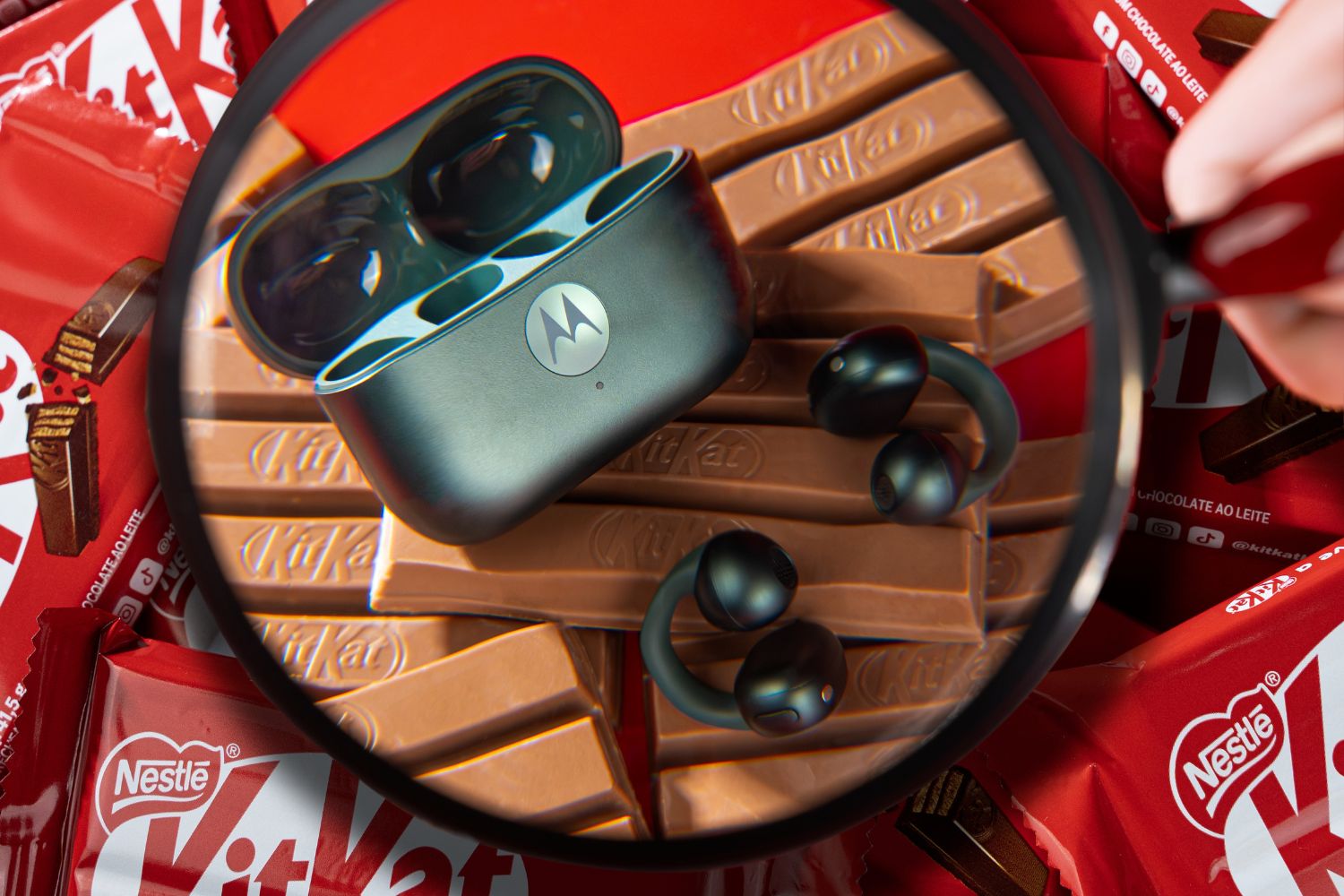 No kit, os influenciadores recebem os fones de ouvido moto buds loop e uma versão exclusiva e personalizada do smartwatch moto watch fit, criada especialmente para a collab. Um detalhe inusitado torna a experiência ainda mais especial: os gadgets chegam com um delicioso aroma de chocolate, desenvolvido exclusivamente para esta parceria e inspirado no universo KitKat. Assim como a Motorola já faz em suas linhas, ao incorporar uma fragrância própria e exclusiva aos produtos graças à parceria com a Firmenich, nesta collab a marca criou um aroma personalizado para acompanhar os devices e potencializar a conexão sensorial com a campanha. Os itens serão entregues em uma bolsa especial, reforçando a proposta de oferecer uma experiência única — que combina o prazer de um break com a qualidade sonora Motorola com tecnologia Sound by Bose e toda a funcionalidade do smartwatch.