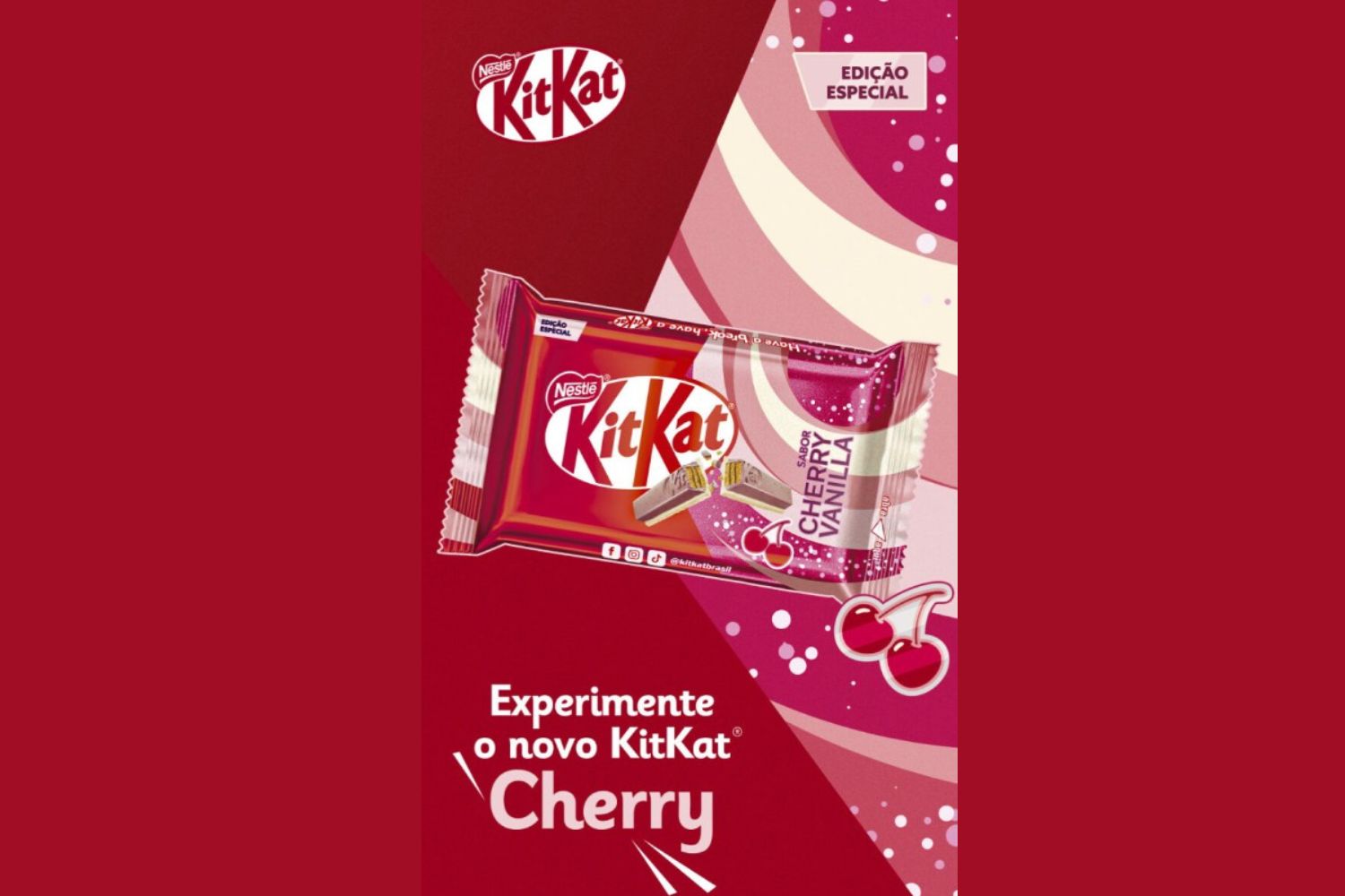 É nesse contexto que KitKat Cherry entra na onda da cerejamania. A novidade reforça o papel de KitKat como marca que acompanha o repertório cultural da Gen Z, conectando-se a um público que consome moda, beleza, memes, música e snacks com a mesma intensidade.