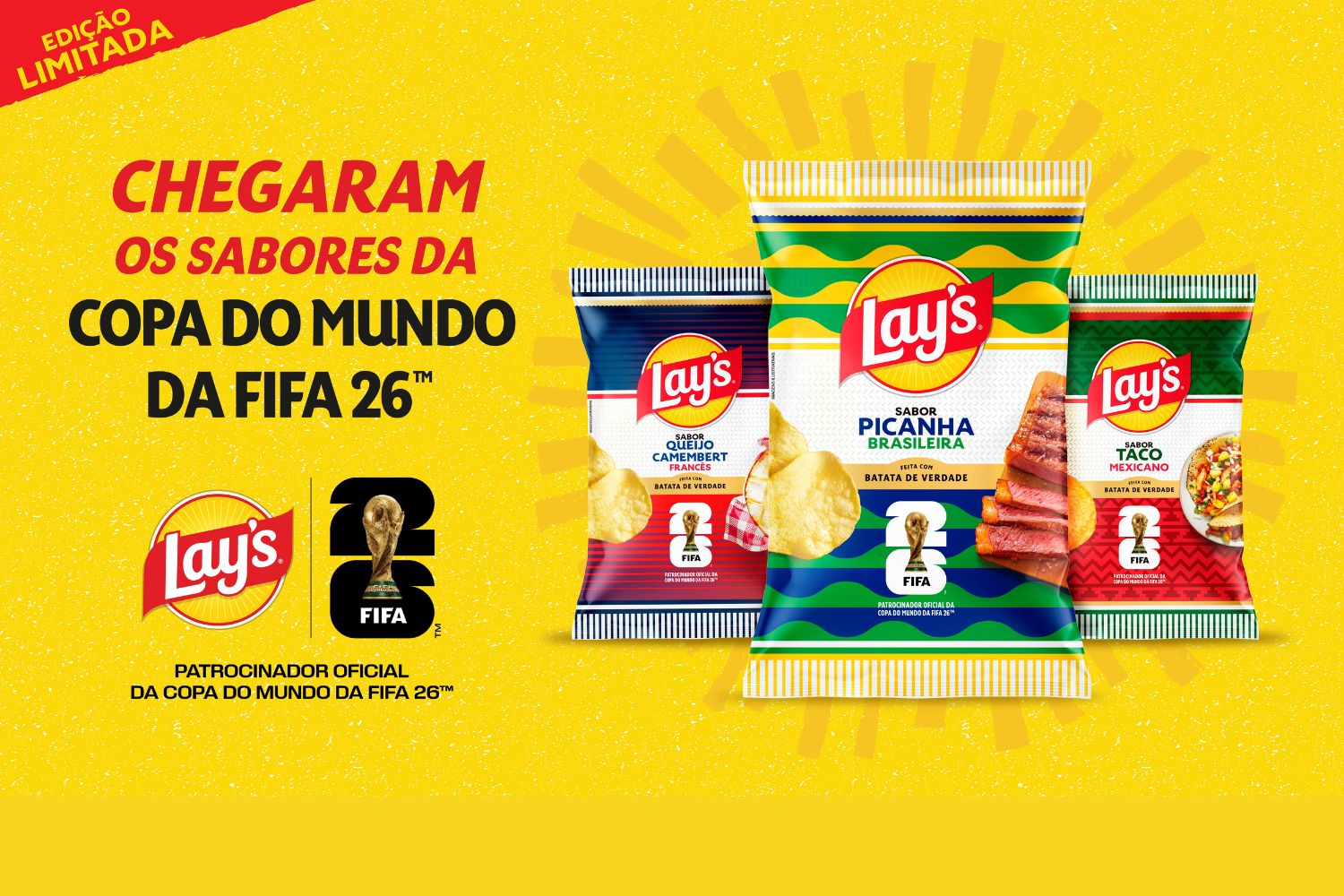 Para celebrar o início da campanha de patrocínio à Copa do Mundo da FIFA 26, LAY’S traz três sabores em edição limitada para o público brasileiro. Os sabores, que trazem referências a países participantes do campeonato, foram desenvolvidos com apoio dos consumidores.