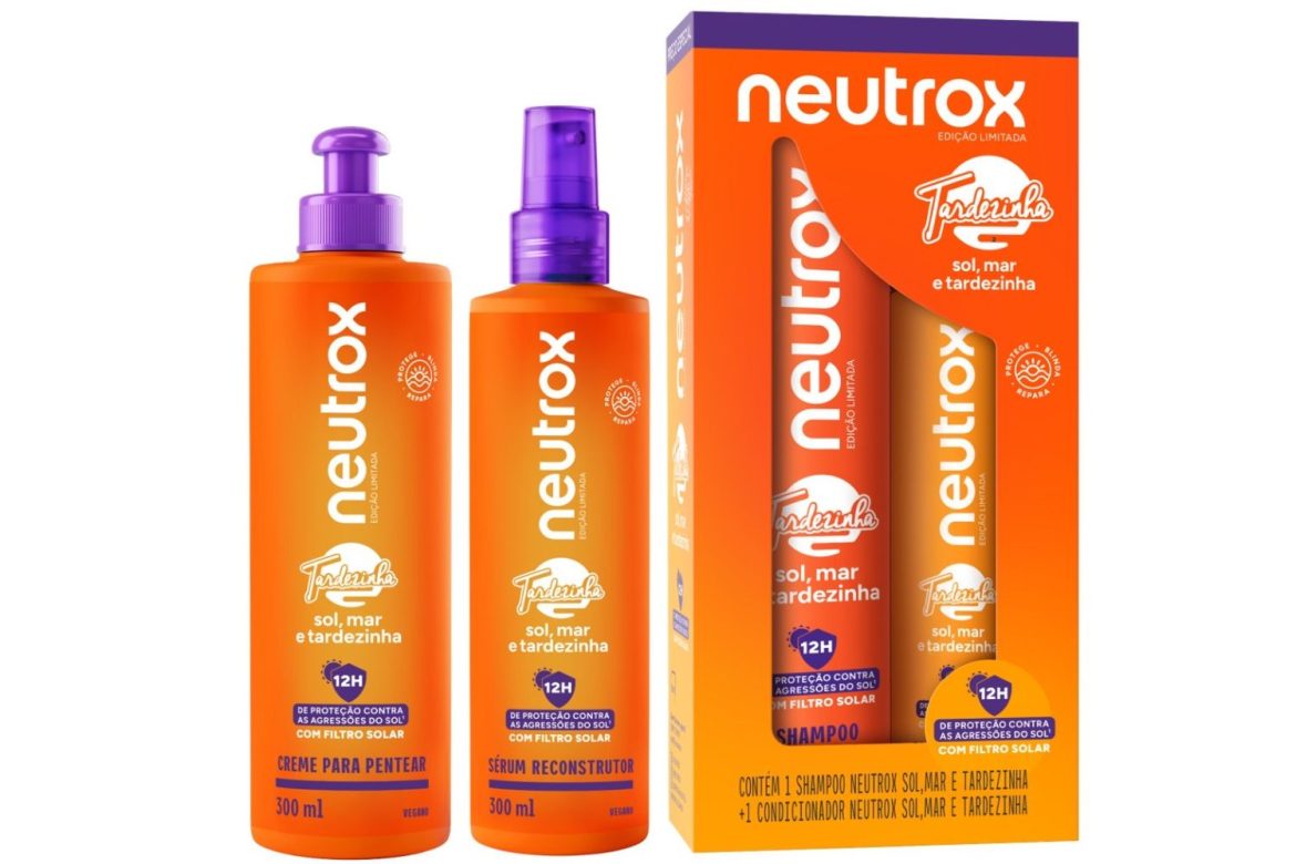 Neutrox, marca de cuidados para cabelos da Flora, anuncia uma collab inédita com a Tardezinha, que celebra 10 anos em 2025 e se consolida como a maior turnê da música brasileira. A parceria celebra o lifestyle solar e conecta a marca a novas gerações de consumidores. O lançamento inclui três produtos em edição limitada chamado de “Sol, Mar e Tardezinha”. A linha contém promopack com shampoo e condicionador, creme para pentear e sérum reconstrutor com 12h de proteção contra as agressões do sol*. Os produtos também vão ser comercializados nos shows da Tardezinha.