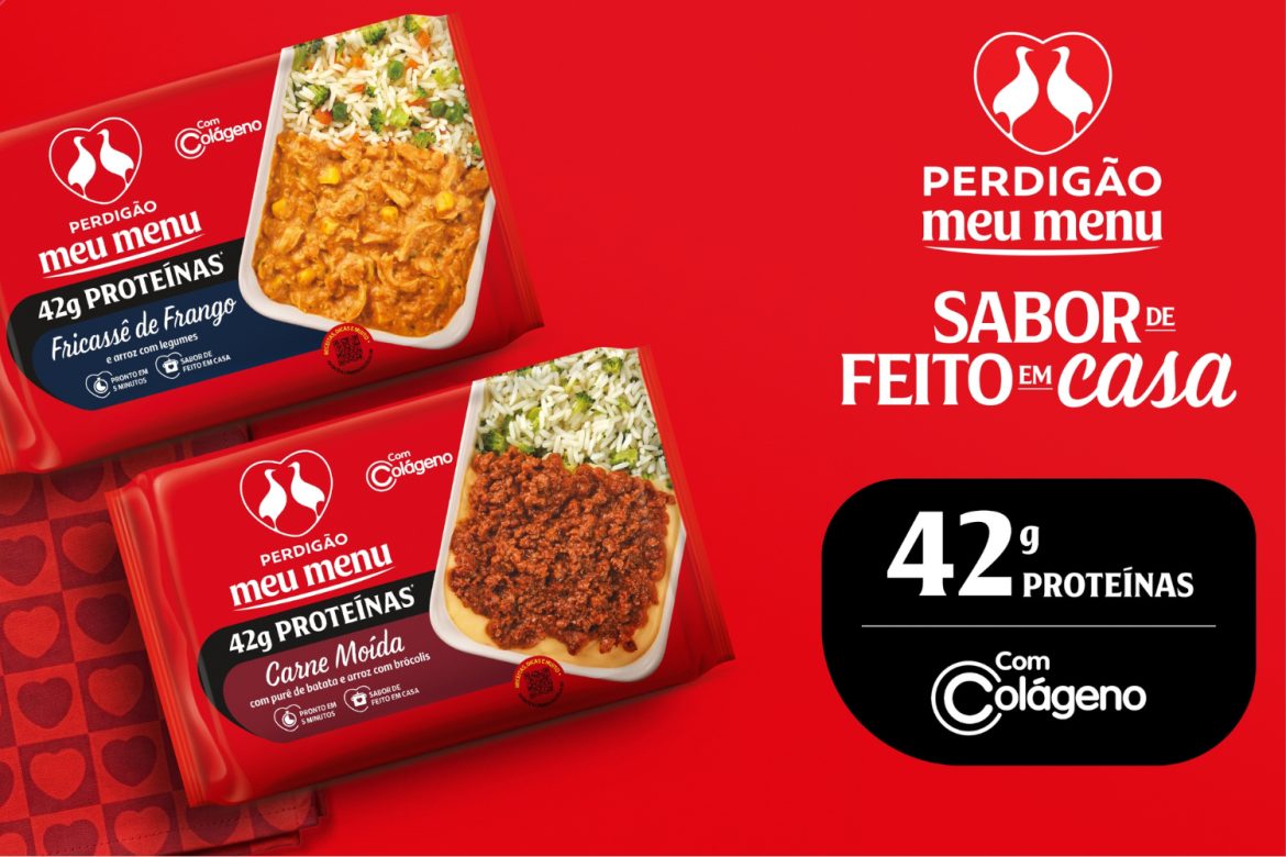 A Perdigão, por meio de sua submarca Perdigão Meu Menu, apresenta duas novas opções de refeições completas, dispondo de 42g de proteína por porção e incremento de colágeno. Com o sabor de feito em casa, credencial da linha que não apresenta adição de conservantes, de acordo com a empresa, o lançamento contempla as composições: Carne moída com purê de batata e arroz com brócolis e Fricassê de frango e arroz com legumes, opções que acompanham os novos hábitos alimentares dos brasileiros, em busca por refeições práticas, balanceadas e que reforçam o consumo diário atrelado a orientação de especialistas alimentares.