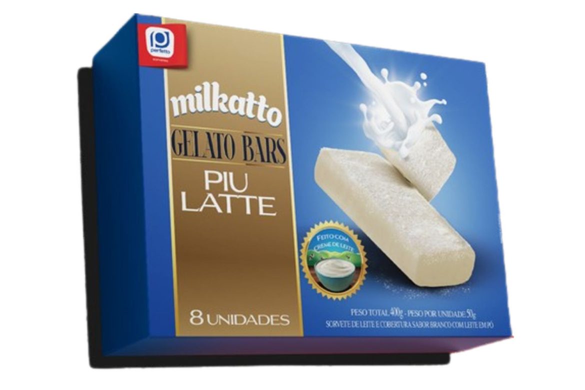 A Perfetto acaba de amplia sua linha de produtos premium com o lançamento do Milkatto Gelato Bars Piu Latte. Essa novidade oferece para o mercado o conceito de gelato em barra, proporcionando ao consumidor uma experiência sofisticada, prática e deliciosa. Cada caixinha contém oito barras de sorvete de leite, feitas com creme de leite de verdade, e cobertas com uma camada irresistível de chocolate branco polvilhado com leite em pó.