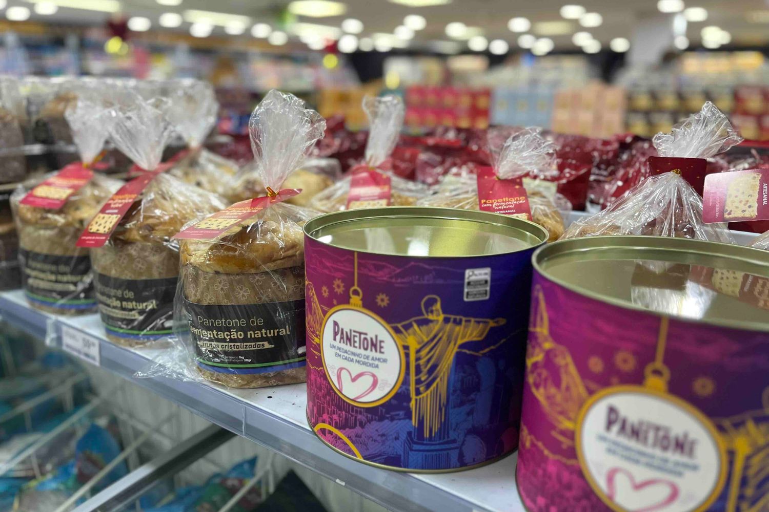 Produzidos pelos profissionais da Padaria Prezunic, os panetones de fermentação natural são novidade neste ano, disponíveis em embalagens de 1kg nas versões “Frutas Cristalizadas” e “Gotas de Chocolate”, ambas elaboradas com processos tradicionais de panificação, valorizando a textura e o sabor equilibrado da confeitaria artesanal.