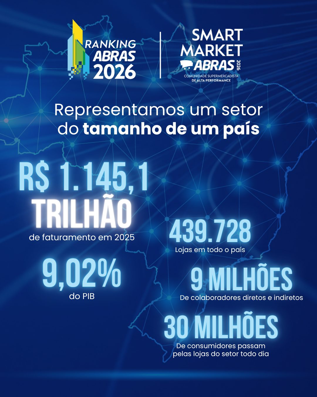 A Associação Brasileira de Supermercados (ABRAS) apresentou nesta segunda-feira, 27, durante a abertura do Smart Market ABRAS 2026, no Pro Magno, em São Paulo, os dados do tão aguardado Ranking ABRAS 2026 — principal radiografia anual do desempenho do varejo alimentar brasileiro.