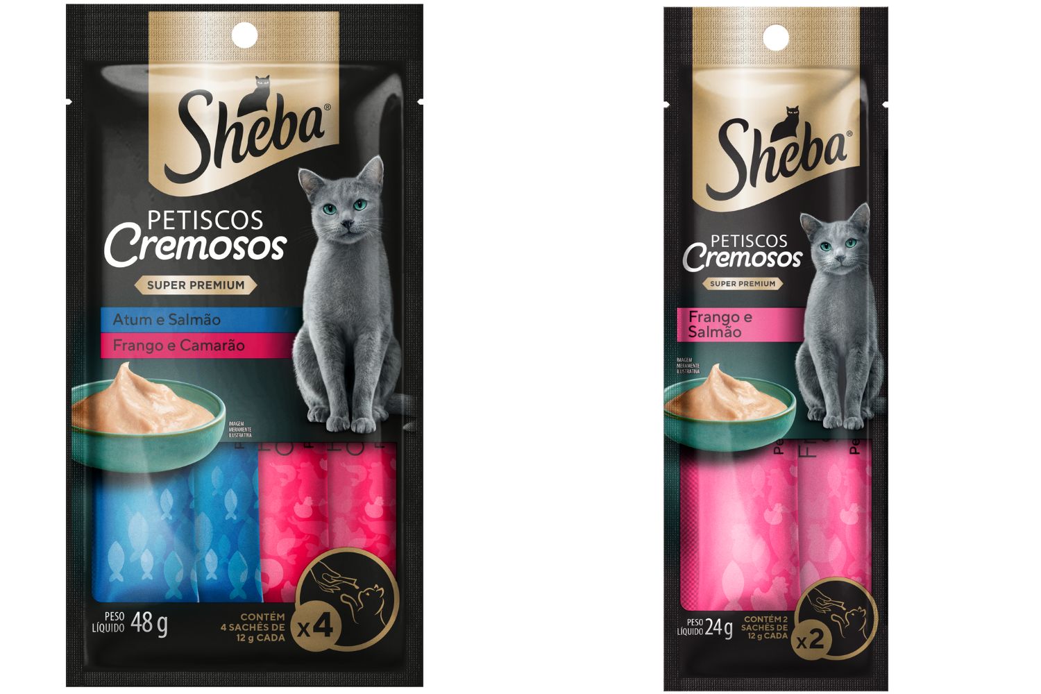 SHEBA, marca super premium da Mars Petcare, lança dois novos petiscos cremosos no Brasil para gatos com alta palatabilidade e baixa caloria: Frango & Salmão (pack disponível com dois sachês) e Atum & Salmão + Frango & Camarão (pack com quatro sachês). Servido direto da mão do tutor ou na tigela como um creme ou purê, o produto fortalece o vínculo afetivo com o felino e conta com até 90% de umidade, contribuindo para a hidratação e saúde urinária.