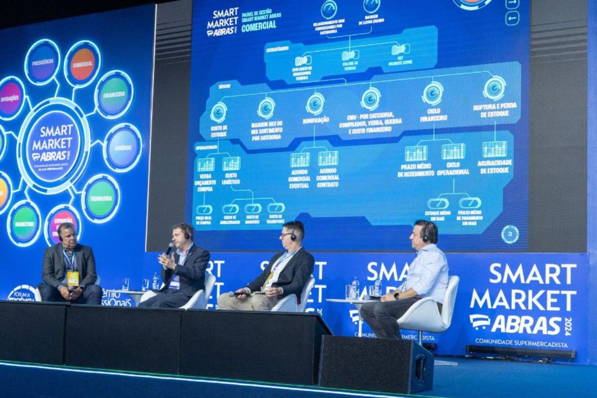 Na terceira edição do Smart Market ABRAS, que aconteceu entre os dias 08 e 09 de abril de 2024, um dos primeiros painéis apresentados foi o Comunidade Comercial. O ciclo de debate contou com a presença do diretor comercial do grupo Ivasko, Paulo Ivasko, do diretor comercial do supermercados Bruda, Adriano Ferreira, do diretor comercial do Dom Atacadista, Caio Lira e do diretor comercial da Redemais Supermercados, Mikelyson Gois, a quem coube a moderação do painel.