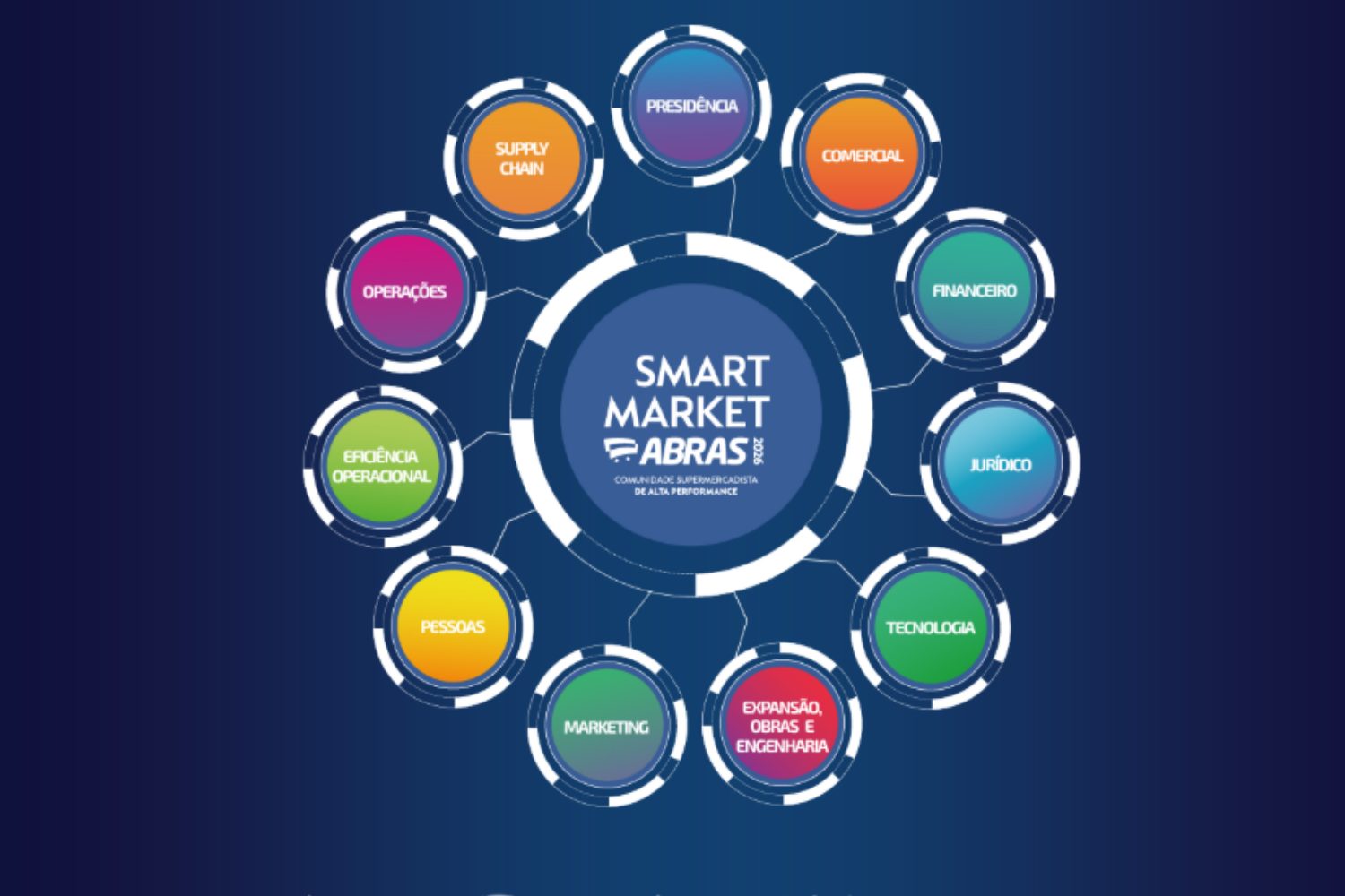 O Smart Market reúne executivos de áreas como presidência, comercial, financeiro, jurídico, tecnologia, marketing, operações, expansão, engenharia, pessoas e eficiência operacional, em uma programação que combina conferências, fóruns especializados e espaços de interação entre indústria e varejo.