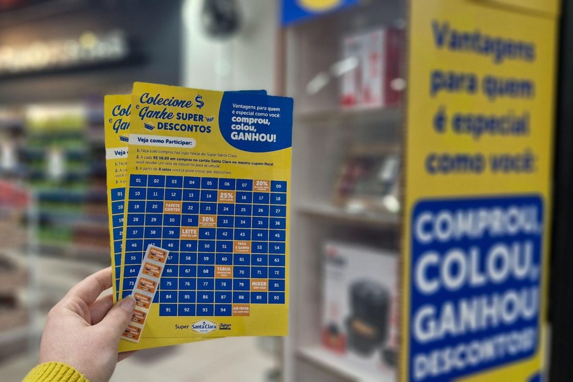 A partir deste mês até 30 de novembro, os Supermercados Santa Clara realizam a campanha “Colecione e Ganhe Super Descontos”, oferecendo vantagens especiais para os clientes que utilizarem o cartão da marca. A promoção possibilita a troca de selos por descontos em diversos produtos, que vão de itens de cama, mesa e banho a eletroportáteis, como mixer e air fryer.