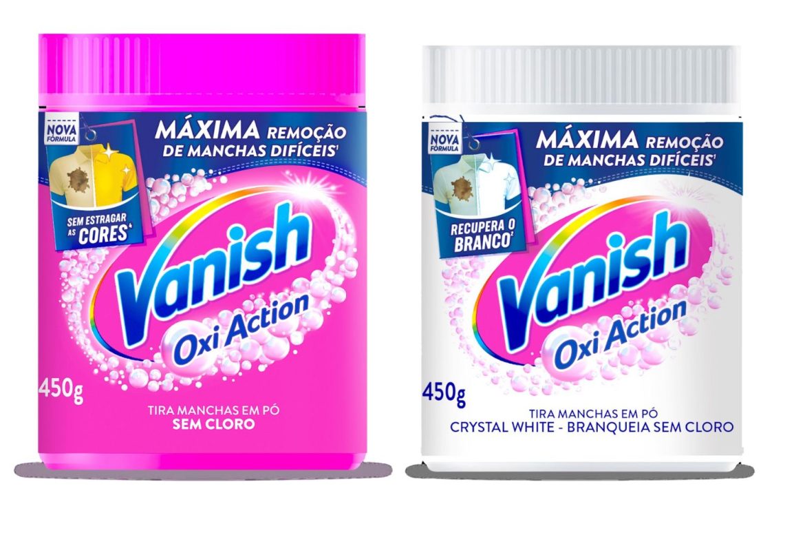 Vanish anuncia o lançamento de Vanish Oxi Action, nova fórmula em pó que elimina até as manchas mais difíceis, mesmo em água fria. O produto está disponível nas versões Pink, para tecidos coloridos e proteção das cores, e White, para tecidos brancos, prevenindo o amarelamento e deixando as roupas brancas ainda mais brancas.