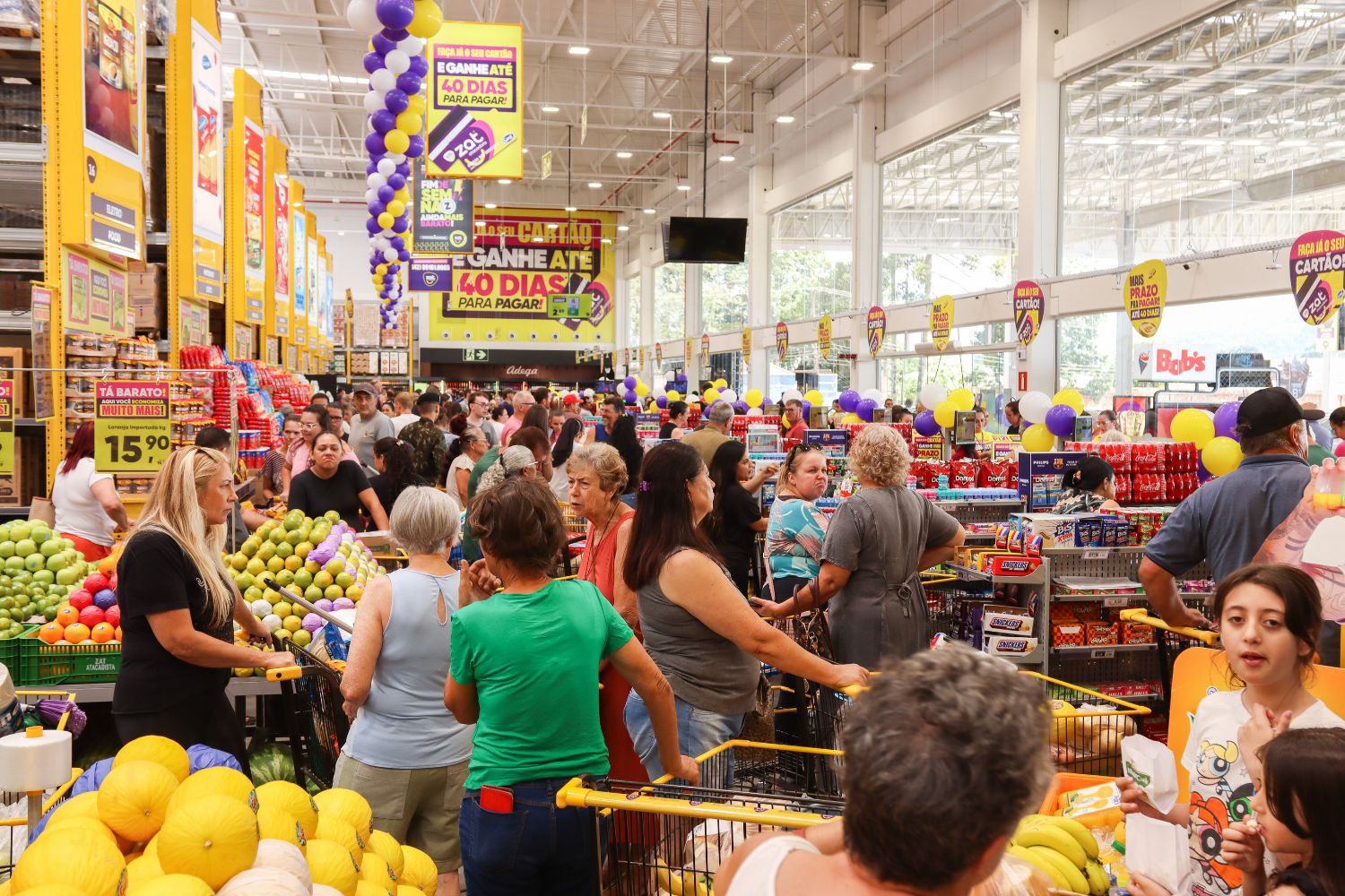 A nova unidade representa um investimento de R$ 34 milhões e conta com uma estrutura moderna, com quase 8 mil m² de área construída, 200 vagas de estacionamento e 3.100 m² de área de vendas. A loja oferece um mix com mais de 10 mil itens, distribuídos em 22 caixas, incluindo autoatendimento, além de setores completos de açougue, padaria e hortifrúti, com produtos frescos direto